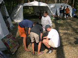 Am Donnerstag um 9.00 Uhr starteten wir mit dem Rad Richtung Titting zu unserem Lagerplatz. Nachdem alle gut angekommen sind, wurden die Zelte eingeräumt und die verschiedenen Dienste eingeteilt (Lagerplatz aufräumen, abspülen, Feuerholz sammeln, usw.). Am nächsten Tag starteten wir dann gleich in der Früh mit der Schatzsuche, bei der verschiedene Fragen zu beantworten waren (manch einer auch mit dem Mesner als Telefonjoker). Mittags wurden "Workshops" abgehalten, bei denen man entweder Freundschaftsbändchen drehen konnte oder eine Fahne basteln (inklusive Fahnenmast organisieren). Nachdem Abendessen ging es dann auf Nachtwanderung in den Wald, wo dann unser Grusselgeschichtenerzähler MAX eine Geschichte zum besten gab, bei der sich alle "g?forchten ham". In der Nacht wurden wir dann überfallen, (von dem Sondereinsatzkommando "GSG Tobi", das aus mehreren älteren und ehemaligen Ministranten bestand). Samstags wurde dann ein Fußballspiel veranstaltet oder man konnte sich anderweitig vergnügen (Frisbee spielen, usw.). Nach einem Spiel, bei dem mehrere Aufgaben zu erledigen waren (z.B. mit einer Frisbee in unseren "Ring-of-Fire" werfen, Torwandschießen oder Sackhüpfen) feierten wir mit unserem Kaplan Schorsch eine Messe, bei der anschließend die Räder und Autos gesegnet wurden. Am Abend gab es dann wie jeden Tag ein hervorragendes Essen von unserem Küchenmeister und Chefkoch Johnson. Nachdem wir dann die Zelte einigermaßen zusammengepackt und den Platz aufgeräumt hatten, ging es dann wieder mit dem Rad zurück nach Eichstätt.